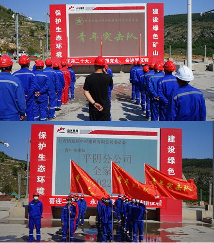 按照共青團(tuán)中央下發(fā)(中青發(fā)【2022】5號)“喜迎二十大、永遠(yuǎn)跟黨走、奮進(jìn)新征程”主題教育實踐活動的通知要求,2022年5月2日,在公司和公司團(tuán)委領(lǐng)導(dǎo)下,兗州中材建設(shè)有限公司平陰分公司組織項目青年骨干,在平陰山水礦山召開平陰分公司“青年突擊隊”成立大會。