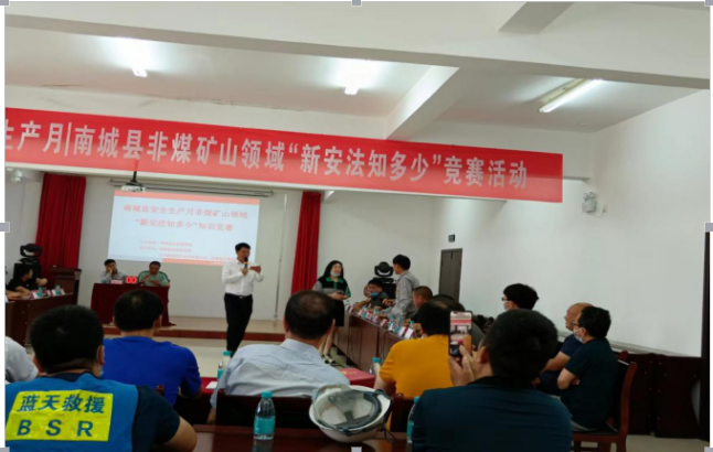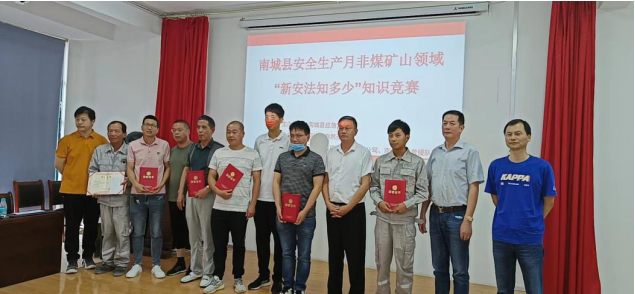 今年6月是全國第21個安全生產月,安全生產月的主題是“遵守安全生產法,當好第一責任人”,今天也是全國安全宣傳日,南城縣安全生產委員會礦山安全專業(yè)委員會決定在江西南城南方水泥有限公司舉辦南城縣非煤礦山“新安法,知多少”知識競賽活動。 參賽隊伍:(1號隊)南城縣新泰石材廠、(2號隊)南城縣南景東風礦業(yè)有限公司、(3號隊)南城縣富耀瓷土有限公司、(4號隊)南城縣青玉礦業(yè)有限公司、(5號隊)江西煜晟礦業(yè)有限公司、(6號隊)兗州中材建設有限公司南城分公司、(7號隊)江西昌和礦業(yè)有限公司。