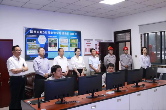 隋同波一行首先參觀(guān)了礦山5G智能控制室,并認(rèn)真聽(tīng)取了關(guān)于5G智能數(shù)字化綠色礦山建設(shè)情況匯報(bào)。