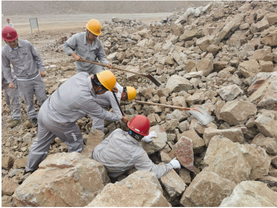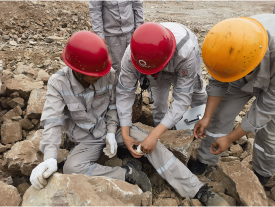 上午10時(shí)整,演練正式拉開序幕。假設(shè)情況是該露天礦山某區(qū)域發(fā)生了邊坡坍塌,造成一名作業(yè)人員腿部受傷被困。接到報(bào)告后,項(xiàng)目副經(jīng)理?xiàng)钣盍⒓磫?dòng)應(yīng)急預(yù)案,迅速組織了由醫(yī)療救護(hù)組、應(yīng)急搶險(xiǎn)組、警戒保衛(wèi)組、物資保障組等部門人員組成的應(yīng)急救援隊(duì)伍,攜帶救援裝備,迅速趕赴事故現(xiàn)場(chǎng)。同時(shí),通訊保障組也迅速建立起臨時(shí)通訊網(wǎng)絡(luò),確?,F(xiàn)場(chǎng)信息暢通無阻。
