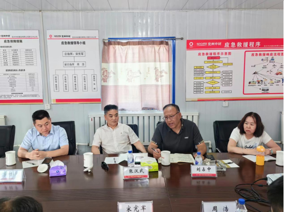 6月21日,中材礦山黨委副書記、總經(jīng)理張漢武一行蒞臨兗州中材舒蘭分公司進(jìn)行安全月安全檢查工作,兗州中材副總經(jīng)理劉占中一行陪同。