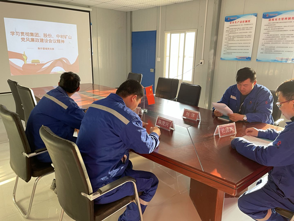 2021年4月9日,焦作晉城黨支部召開全體黨員大會(huì),集中學(xué)習(xí)貫徹落實(shí)2021年中國建材集團(tuán)、中國建材股份、中材礦山黨風(fēng)廉政建設(shè)會(huì)議材料,會(huì)議由支部書記杜國賓支持,支部全體黨員參加。
