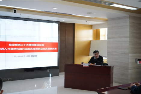 郭正勇從三方面進(jìn)行了深入闡述和精彩宣講。一是深刻理解二十大報告中關(guān)于推動綠色發(fā)展,促進(jìn)人與自然和諧共生的深刻內(nèi)涵;二是全面把握人與自然和諧共生新任務(wù),聚力踐行央企綠色發(fā)展使命擔(dān)當(dāng);三是聚焦近期工作,強化擔(dān)當(dāng)落實。
