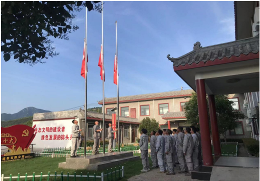 伴隨著雄壯的《義勇軍進(jìn)行曲》,五星紅旗冉冉升起,隨風(fēng)飄揚(yáng),全體員工齊唱國(guó)歌,向國(guó)旗行注目禮,目光凝視著迎風(fēng)飄揚(yáng)的五星紅旗,心中寄托著對(duì)黨無限的熱愛、崇高的敬意以及深情的祝福。