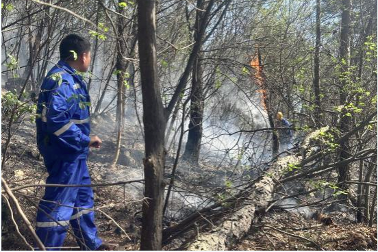 清明將至,當(dāng)?shù)卮迕穹傧銦埣漓耄斐娠w火引起了火災(zāi)。因起火點(diǎn)位于山地深處,遠(yuǎn)離公路,滅火任務(wù)困難,距離水源較遠(yuǎn),在項目副經(jīng)理向孝陽同志和安全副經(jīng)理張目利同志的帶領(lǐng)下,大家紛紛拿起鐵鍬、釘耙等工具,前往起火點(diǎn),清理易燃物,鏟土澆蓋火星子,為下一步工作做好鋪墊,終于在大家的努力下,水源送到了山頂,火情被一一撲滅。